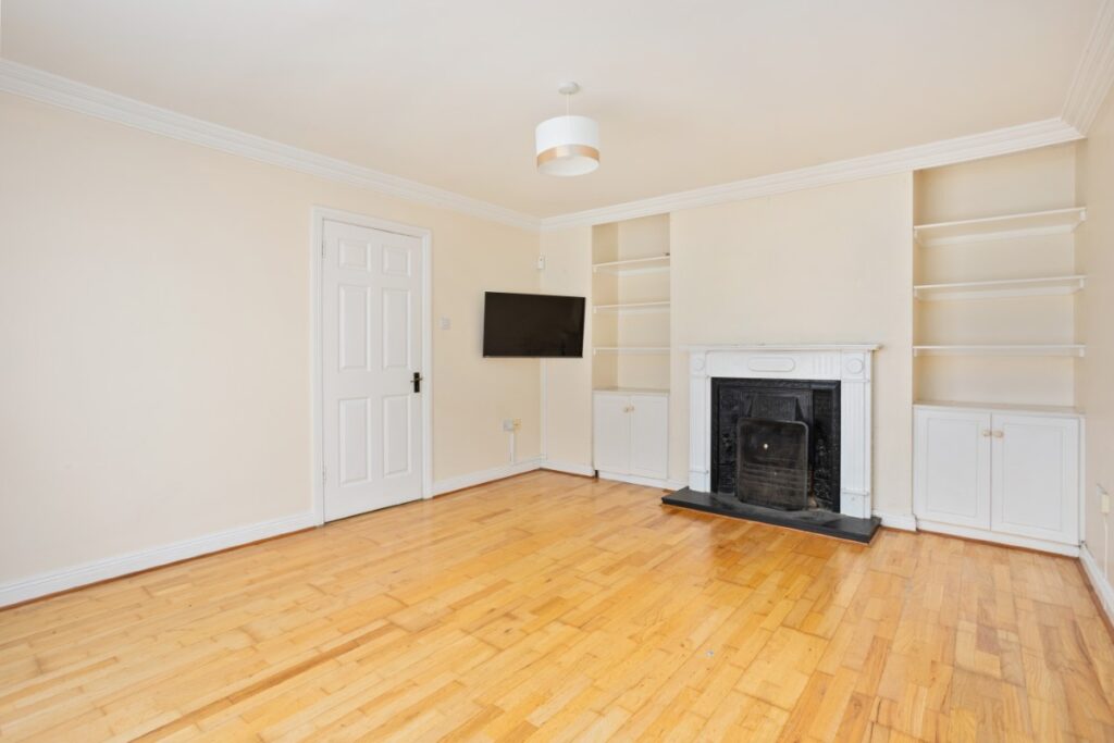Sitting Room: Coving, light fitting, feature fireplace with a wrought iron insert & polished hearth, curtains, wooden floor, built in units, TV point