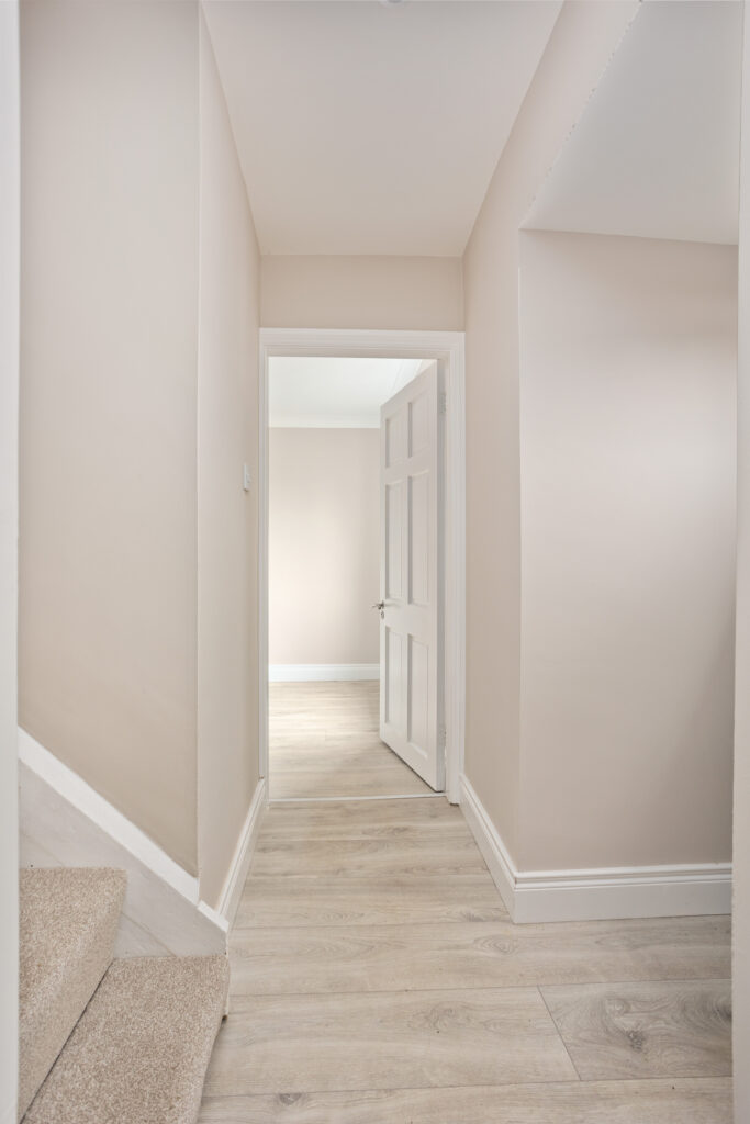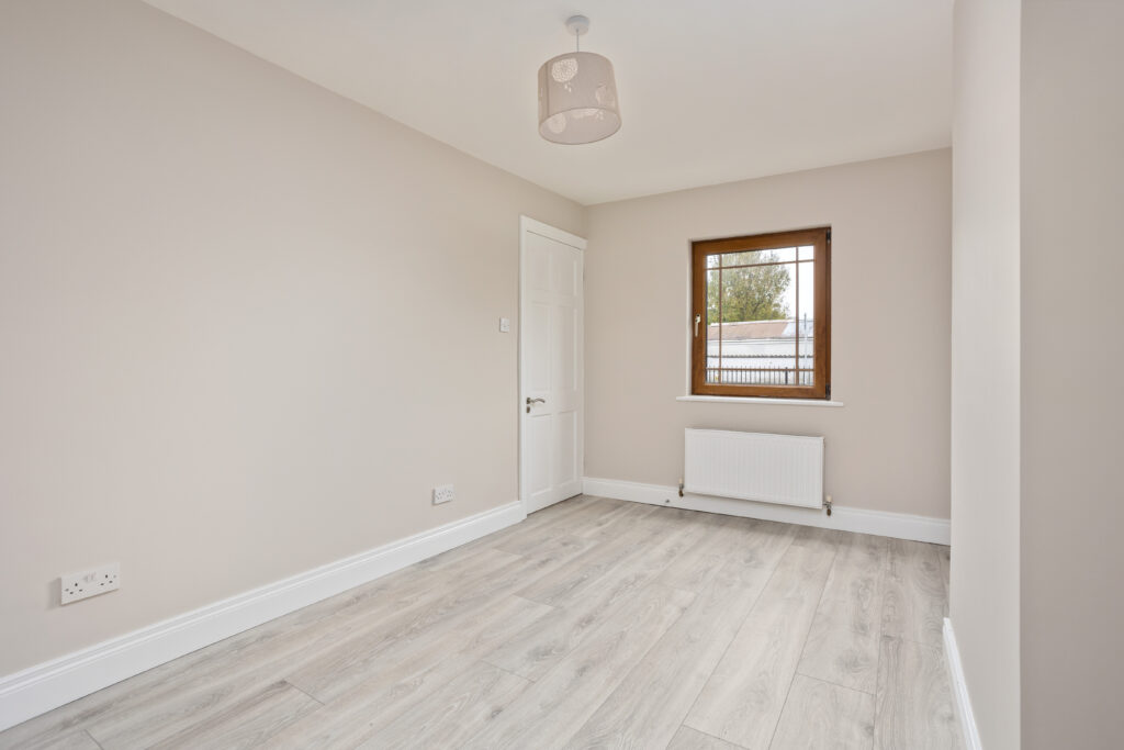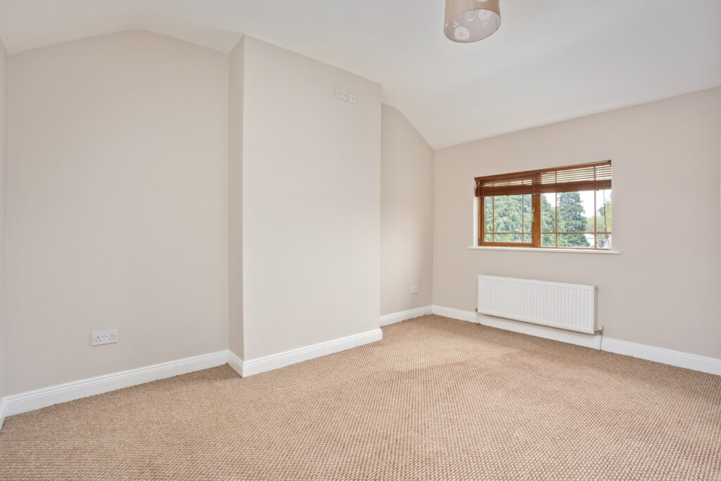 Bedroom 2: Light fitting, carpet ,wooden venetian blinds