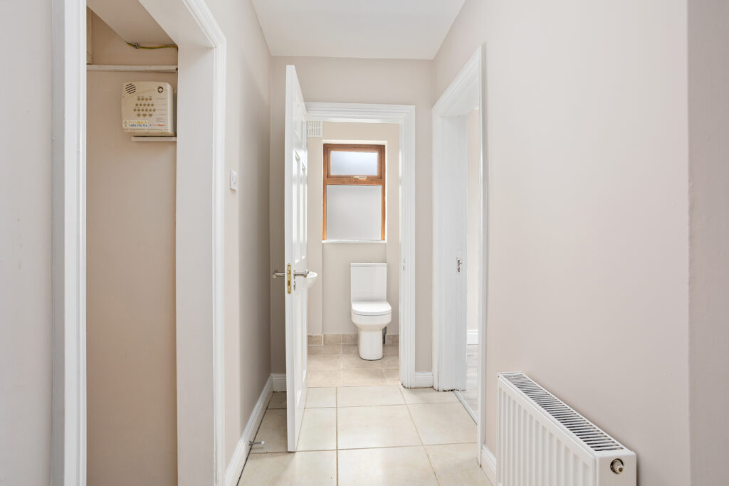 Bathroom: Tiled from floor to ceiling, separate shower, power shower, extractor fan, WHB, W