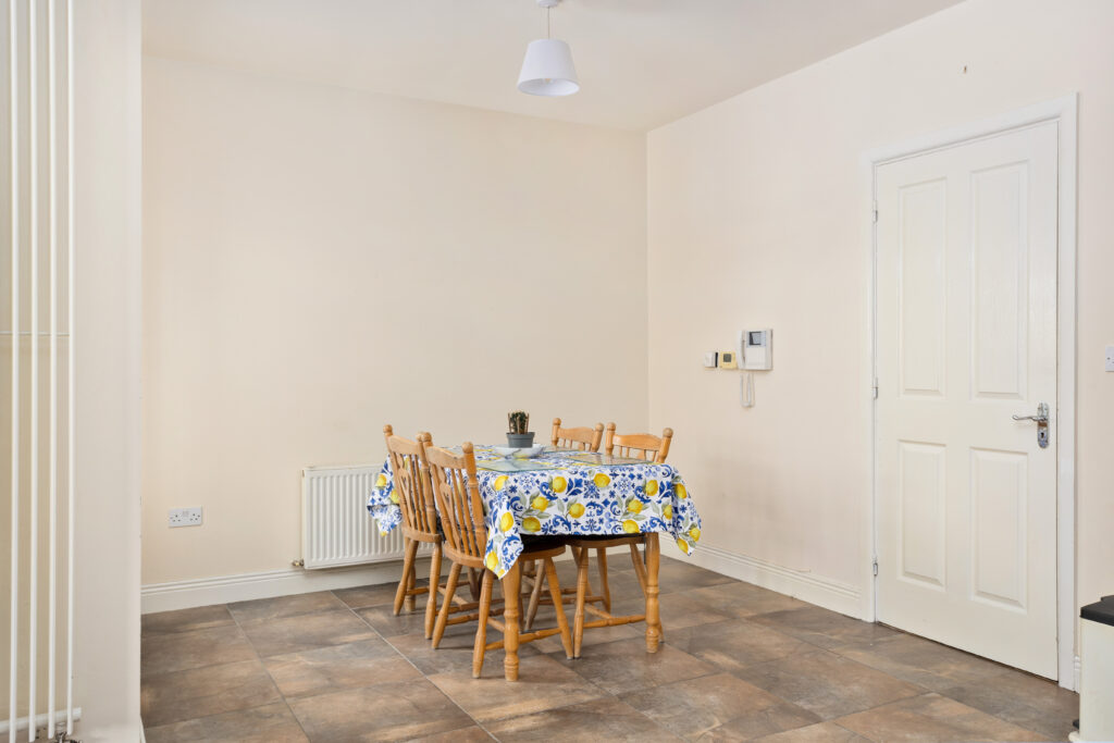 Kitchen/Dining: Tiled flooring, light fitting, fully fitted kitchen, stainless steel sink, tiled splash back area, oven, hob, extractor fan, washing machine, radiator