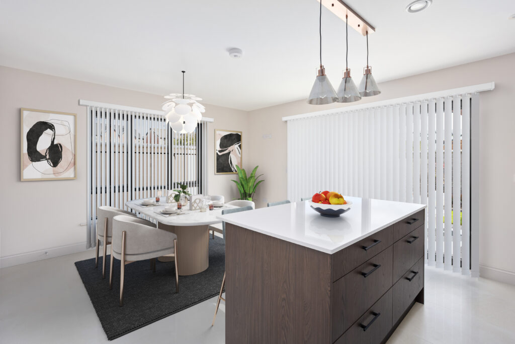 – Generous lighting, power & media points provided throughout each house. Cat 5 cabling provided as standard